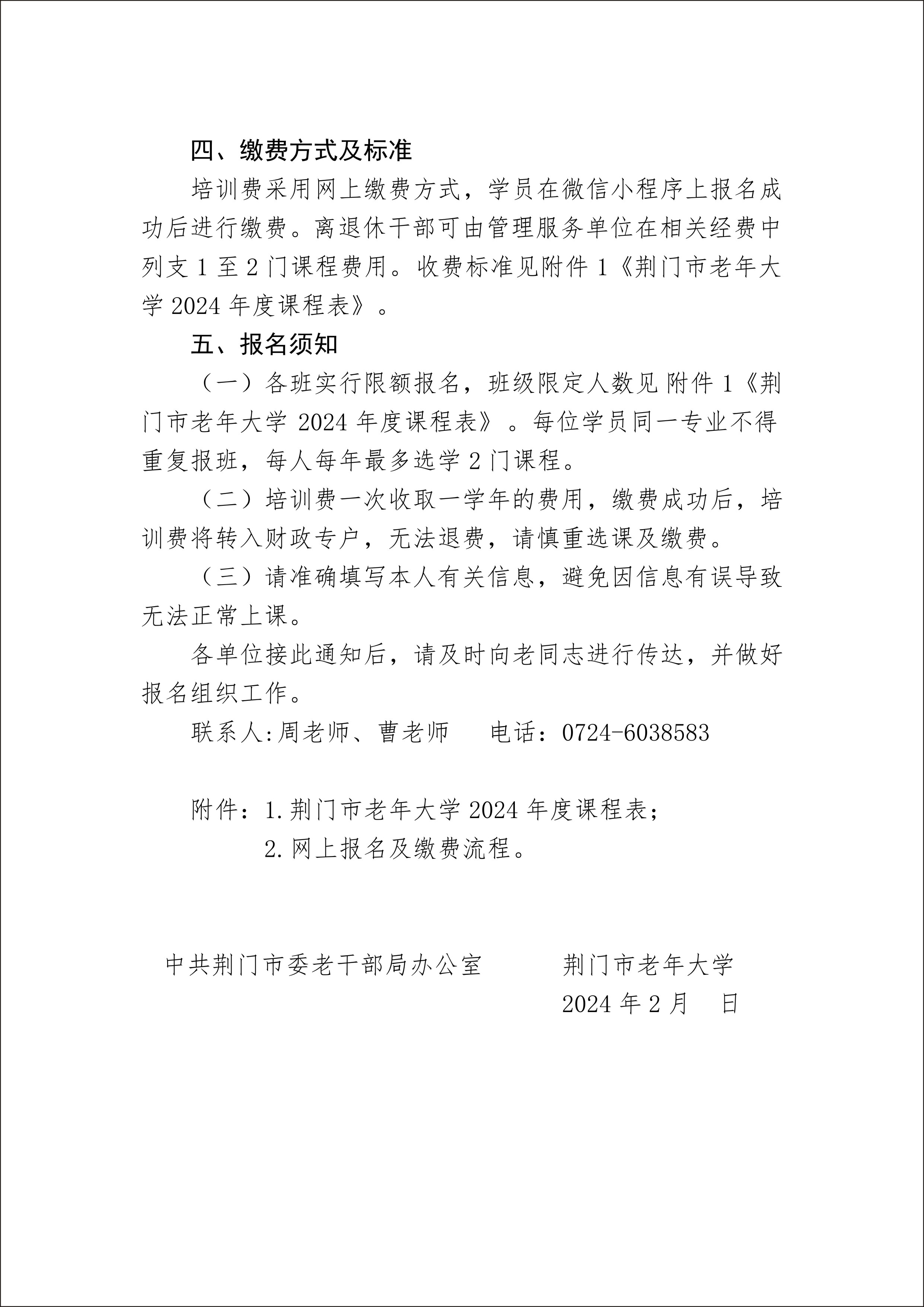 荆门市老年大学2024年度开学通知